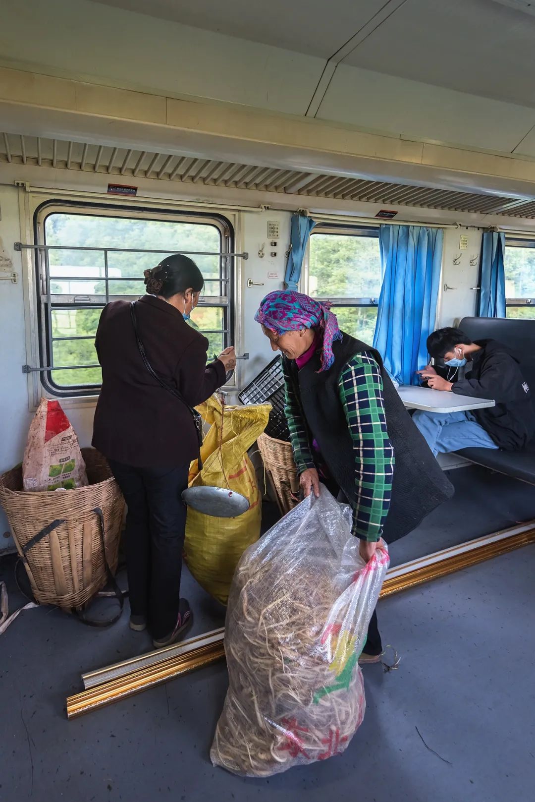 火车上是可以进行交易的,这是为了更好地服务于当地百姓铁路部门默许的一种便民措施。