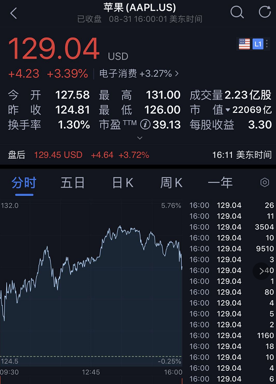 7月30日苹果公司宣布拆分股票一事,对于截至2020年8月24日股市收盘登记在册的所有苹果股东,在登记日所持有的每1股股票都将额外获得3股股票(相当于A股的10送转30),拆股调整后的股票交易将于2020年8月31日开始,这将降低苹果公司每股股票的价格,以便更多投资者参与投资。据悉,苹果公司上次拆分股票是在2014年,当时公司股价超过每股600美元。