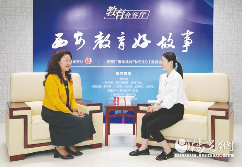 西安市浐灞欧亚中学校长黄凌(左)做客“教育会客厅”