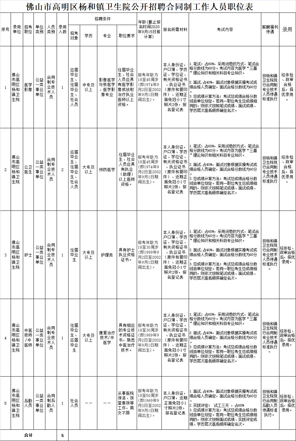 岗位所需的条件:详见《佛山市高明区杨和镇卫生院公开招聘合同工职位表》