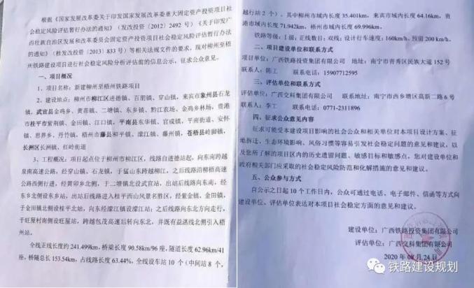 根据《国家发展改革委关于印发国家发展改革委重大固定资产投资项目社会稳定风险评估暂行办法的通知》(发改投资(2012)2492号)《关于印发广西壮族自治区发展和改革委员会固定资产投资项目社会稳定风险评估暂行办法的通知》(桂发改投资(2013)833号)等相关法规文件的要求,现对柳州至梧州铁路建设项目进行社会稳定风险分析评估前的信息公示,征求公众意见。