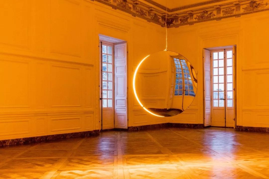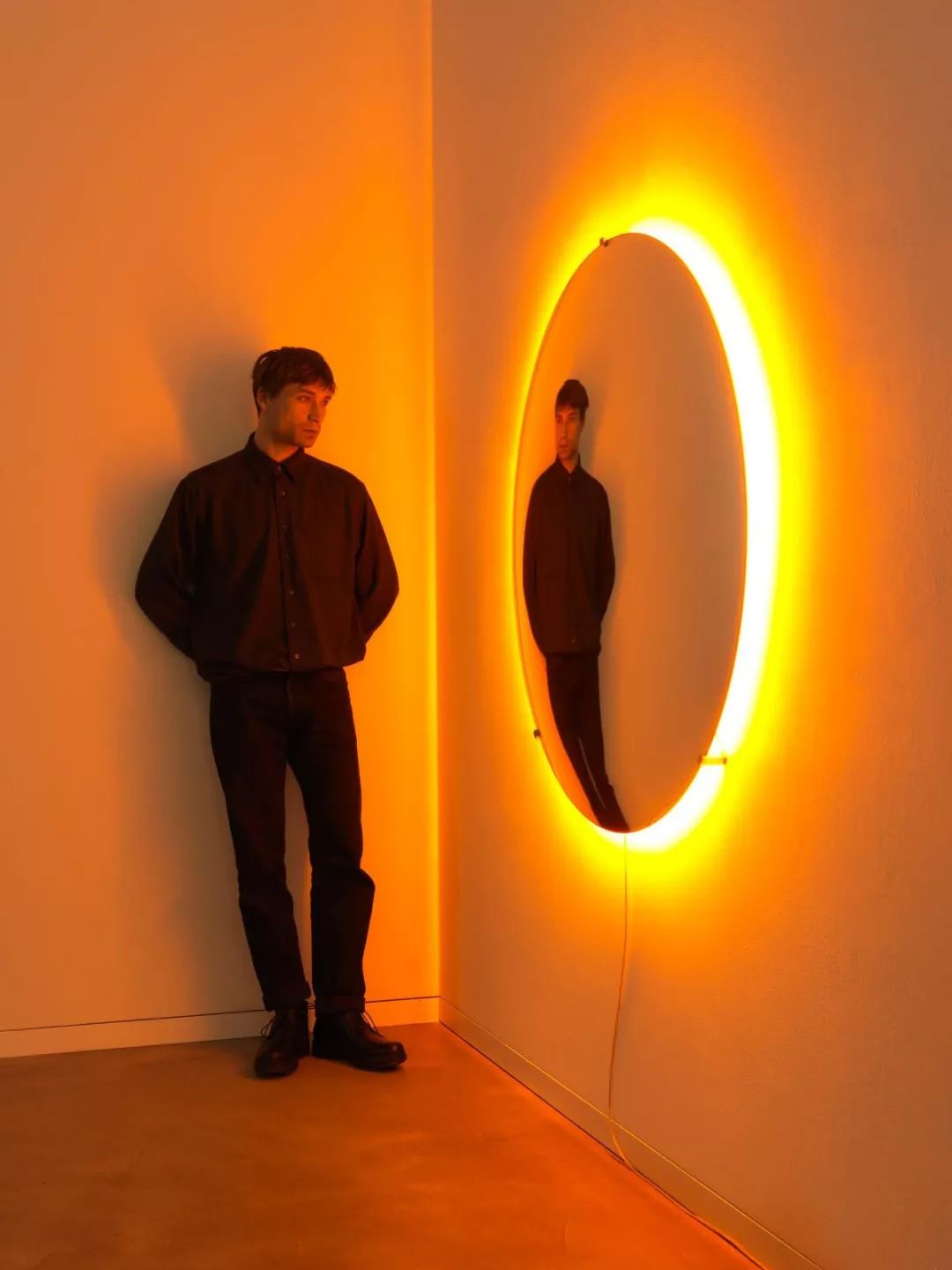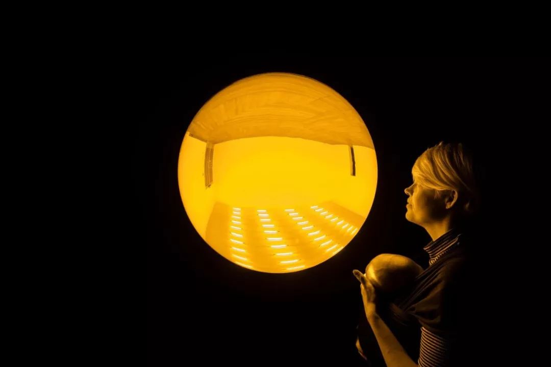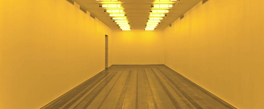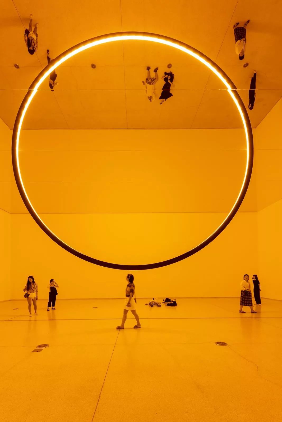 早在1997年,Eliasson 举办过一个名为「Room For One Colour」的展览,整个展厅空无一物,只有头顶的黄色灯光,观众走进来,看着彼此,看着自己的手,发现整个空间只剩下了黄色和黑色 ▽