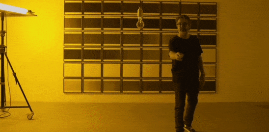 而他最擅长的方面就是调动观众的感受力,让观众主动去感受艺术,比如在片中说到洛杉矶画廊的投影项目 ▽