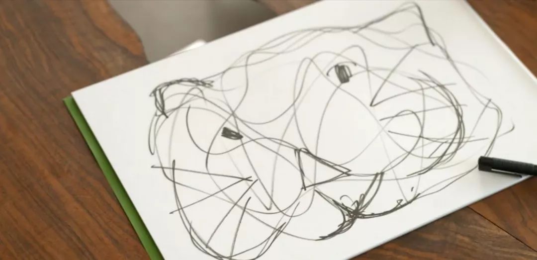 像他在镜头前展示的那样,就算是在画纸上随手涂画的凌乱线条,最后他也能在其中画出一只猫。