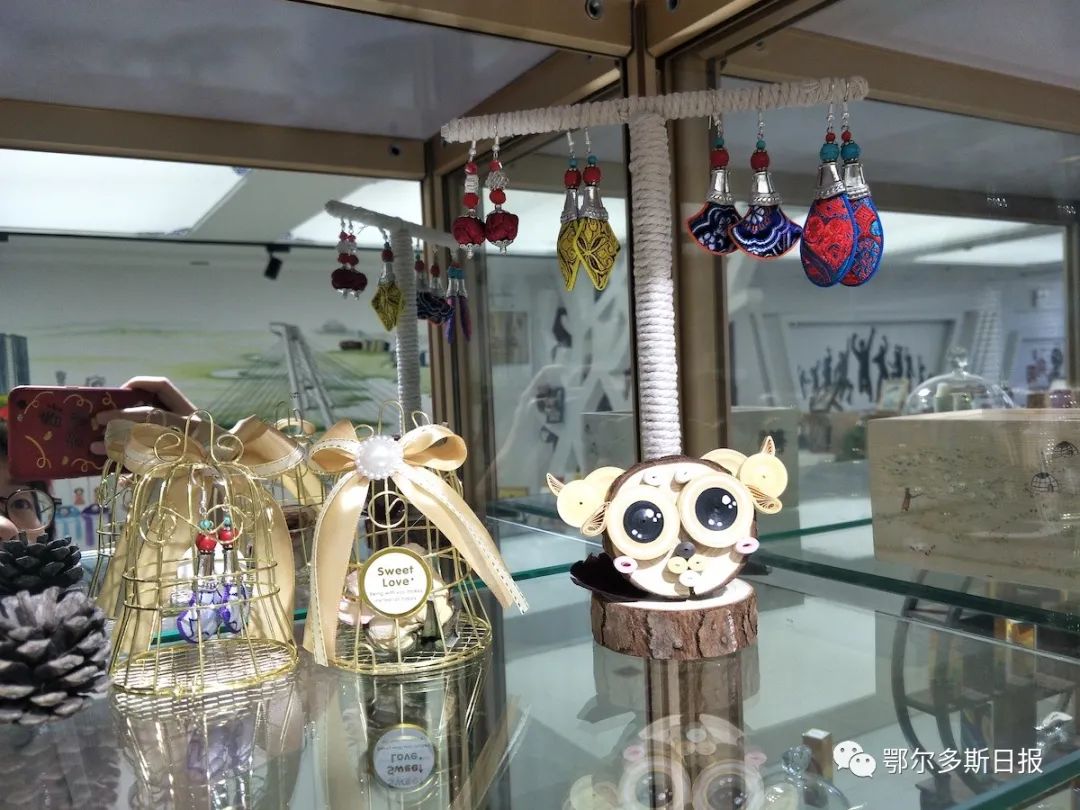 大到非遗剪纸作品、衍纸作品,小到鄂尔多斯新娘头饰小挂件、蒙古族耳饰以及民族风发卡、茶叶罐、丝巾、项链等等,朝乐蒙的产品拿到各地举办的文博会展上,总是备受青睐。大家都认为,这些东西不仅仅是物品,更是一种文化和情感,把它们带回家去,就是把鄂尔多斯文化带回了家。而且这些产品大多数是残疾人手工制作而成,产品内的“温度”以及其所蕴含文化的“深度”,都成为人们“买买买”的绝佳理由。