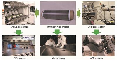 随着复合材料工艺技术的发展和应用范围的不断拓展,针对手工铺层工艺难以实现外形复杂和大尺寸制件制造、手工铺层工艺效率低下、质量一致性难以保障等问题,自动铺放工艺在航空领域的应用越来越广泛。同时,不论是自动铺带还是自动铺丝工艺对预浸料都提出了不同于传统手工铺贴工艺的要求。