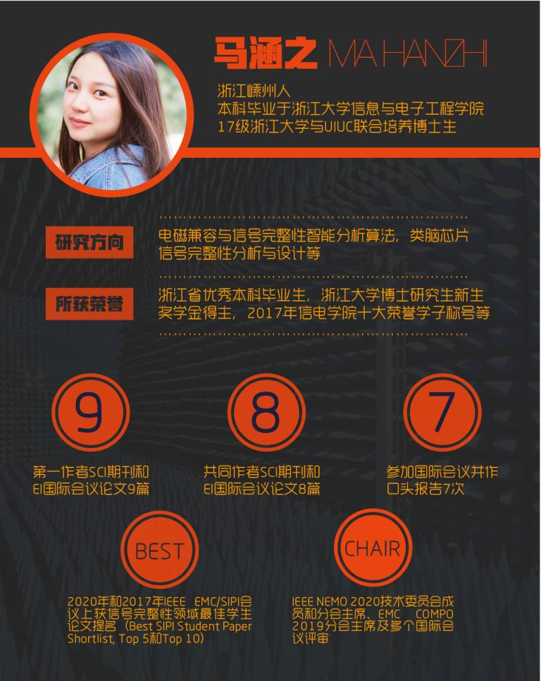 马涵之在本科就读于浙大信电学院时期,就逐步培养了自己的兴趣和志向,立志在电磁兼容方向进行深入研究,探索更多提高电磁兼容性行之有效的方法。