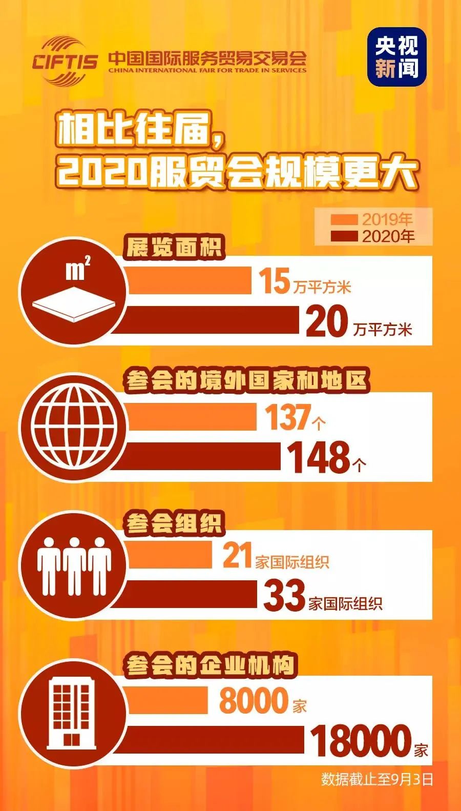 展会规模进一步扩大。今年中国国际服务贸易交易会根据疫情防控需要和数字展览发展趋势,采取线上线下结合的方式,虽然面临疫情影响,国际国内参展参会的热情仍然很高,企业的数量超过往年,一批服务领域新模式新成果将得到充分的展现。