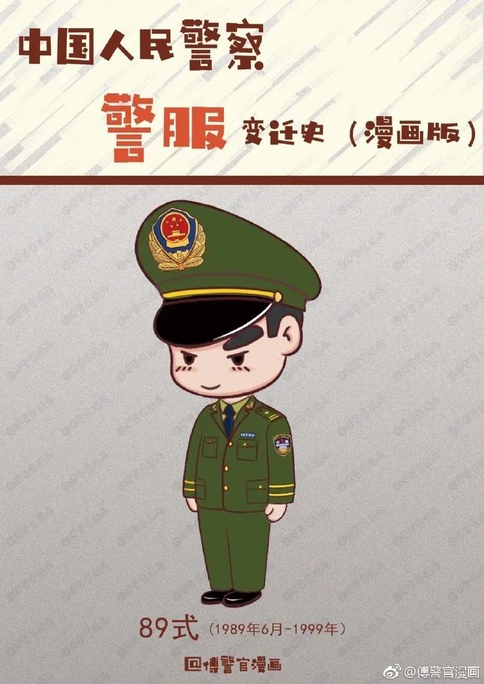 1995年7月,“八九式”警服又进行了小改,警衔由领章改为肩章,佩戴肩章式警衔,取消领章。警号底色由红色改为深蓝色,字为银色,改为有机玻璃制作。