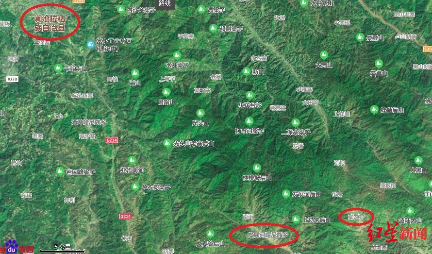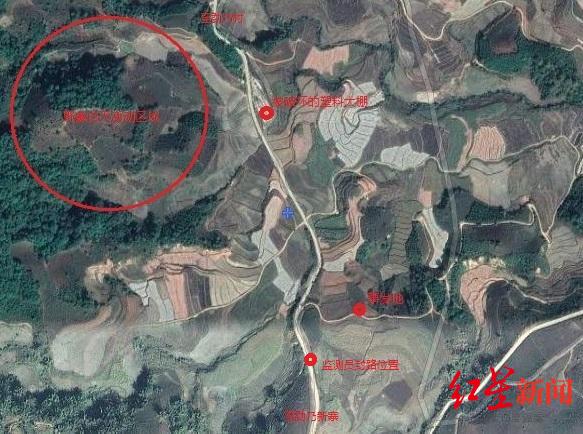 卫星地图显示,罗福大死亡的位置,位于勐乃新寨以北约200米处东侧的甘蔗林,当地称这一片为老瓦厂。负责该辖区亚洲象监测工作的村民罗四告诉红星新闻,彼时象群在老瓦厂一带活动多日,故每日晚8时,监测员就对该地段封路。