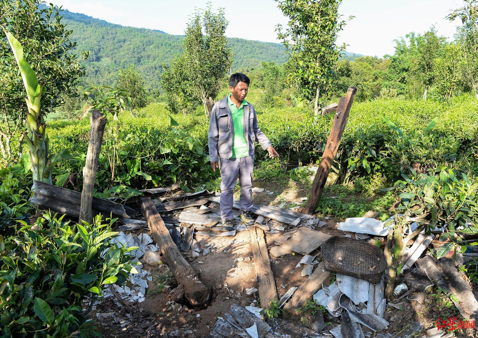 罗福大死亡的现场十分凌乱。9月2日,红星新闻在这里看到,甘蔗林中间有一条约4米宽的象道,当地茶农建的房,亦被野象踩成一堆瓦砾。亚洲象有白天在森林里避暑,夜间外出觅食之习性。结合现场分析,不排除当晚罗福大借茶农房子休憩。