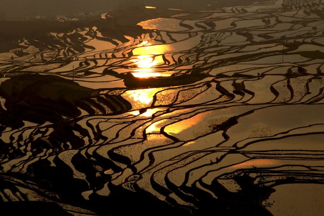 红河,潺潺的河水流淌过孕育生命的大地,千年哈尼梯田层层叠叠,沿着哀牢山的沟壑直抵云霄,云翻雾涌,映照着天空的变幻万千。