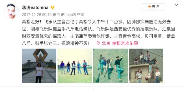 2017年,飞乐队吉他手高松,因患肺病去世,曾经的爱恨情仇都随风消散。但作品,和作品背后的传奇,会永远流传。