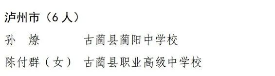原标题:《四川省教书育人名师、名校长、名班主任、名辅导员名单出炉!泸州这些老师上榜》