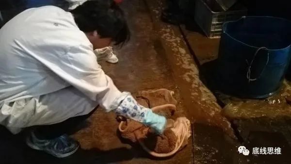 作者们在屠宰场从牛瘤胃中取样(图片来源:作者供图)