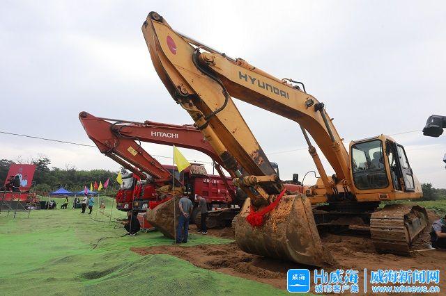 9月10日,在文登区张家产镇车卧岛村南侧,头顶蓝天白云,周边葱翠环绕,数台身披红花的挖掘机、工程车格外显眼。这里是莱荣高铁文登南站及控制性工程建设工地,作为潍烟高铁、莱荣高铁项目建设动员大会的威海会场,项目建设的动员令从这里发出——10月份,莱荣高铁威海段将正式开工建设,计划用三年半的时间实现全线建成通车。
