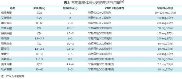 痛风急性发作应尽早应用足量非甾体抗炎药的速效剂型,主要包括非特异性环氧化酶(COX)抑制剂和特异性COX-2抑制剂。非特异性COX抑制剂需注意消化道溃疡、出血、穿孔等胃肠道风险;特异性COX-2抑制剂的胃肠道风险降低50%左右,但活动性消化道出血、穿孔仍是用药禁忌。