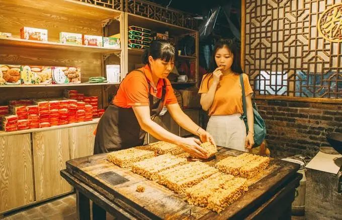 除此之外,别忘记尝尝兴坪有名的“松花糖”,富有棕黄色光泽的松花糖品质酥脆,籽粒密实,清甜香脆,入口即化。