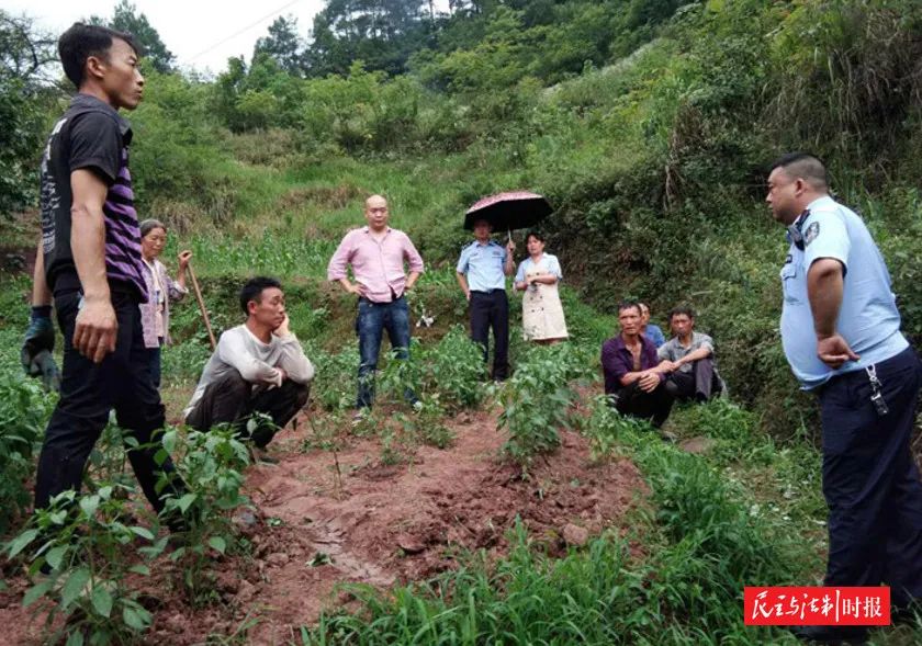 村干部和民警在田间地头处理矛盾纠纷。王艺涞/摄