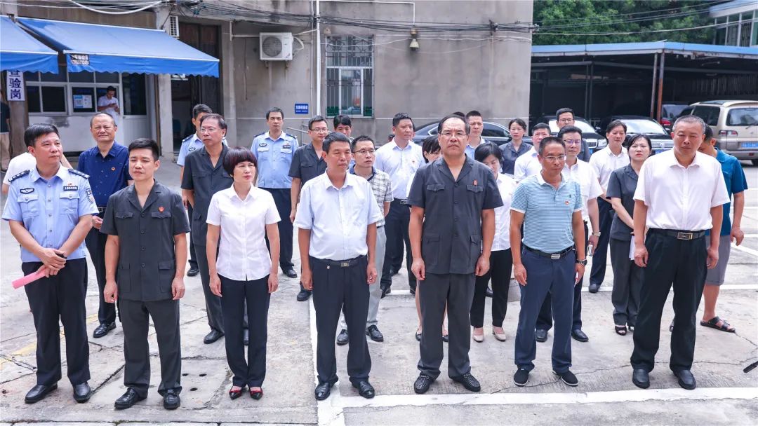 省法院李为民法官,省人保公司陈珍副总经理,市法院连强副院长、池开通庭长,县委政法委林文副书记,县法院林秀榕院长,县公安局程章清副局长共同为道交一体化诉调中心揭牌。