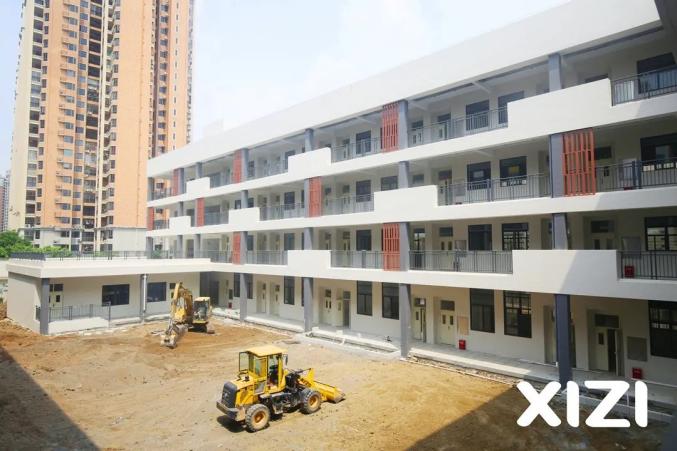 小编看到,学校所配备的设施都是满足开学用,学校总共有六栋教学楼,现在只使用了其中一栋的一楼和二楼,其他未投入使用的都已经围蔽起来了,全校建筑都已经完工,教学区内部的也完善好了。现在,正进行外部环境的收尾工作,预计10月下旬正式交付使用。