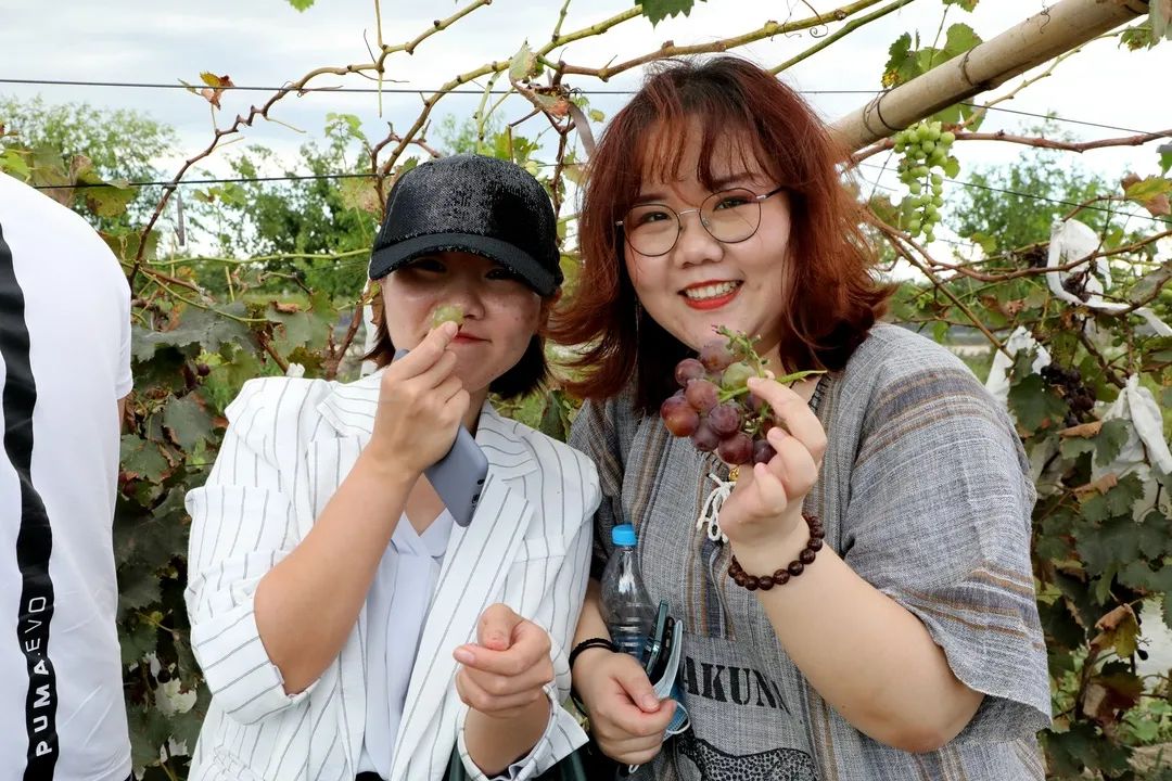 一边品尝用养殖尾水灌溉的葡萄,