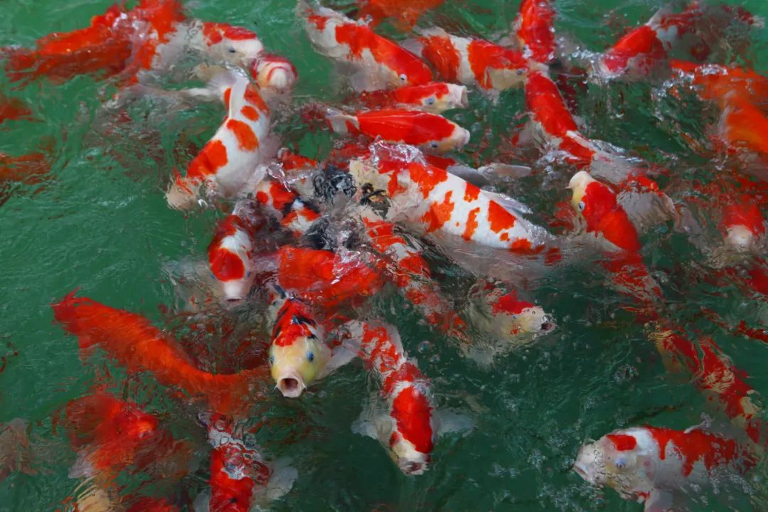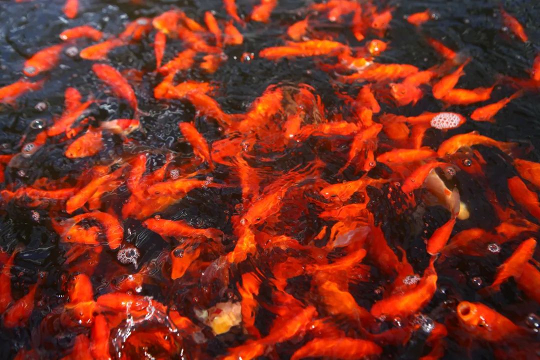 新媒体记者一行参观了分拣物流区,这里的金鱼、锦鲤结伴游弋,