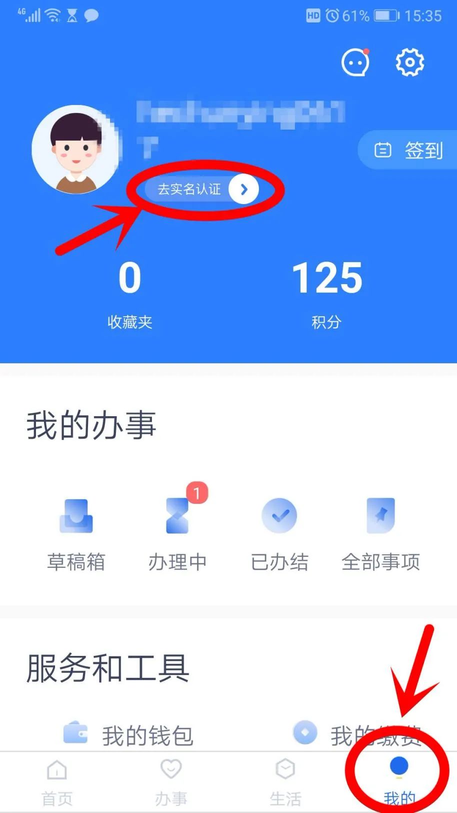 登录后点击APP页面右下方底部“我的”,点击头像右边的“去实名认证”,进入实名认证页面。实名认证后即可办理业务。
