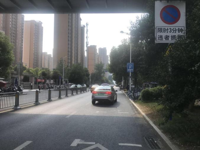 记者在现场发现,医院门口的天鹅湖路双向上共有6个车位,这些车位跟路边常见的收费车位有些不同。“长时停车位是密闭的,限时车位是虚线的。”交警公巡一大队二中队中队长陈钢健说,为了提醒广大驾驶员,道路两边都设有提示牌:限时3分钟,违者抓拍,其中就有新增的限时停车标志。