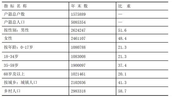 2019年末泸州市户籍人口及构成 单位:户、人、%