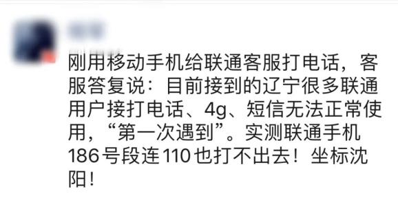 原标题:《辽宁大量联通用户手机无信号,无法拨打电话…联通:第一次遇到,正在处理》