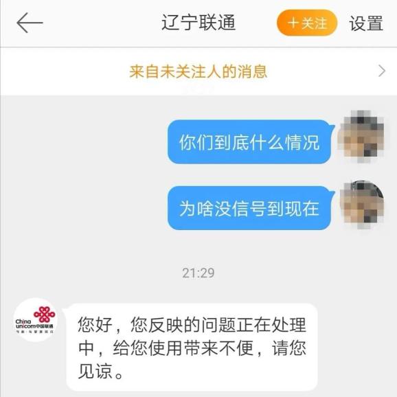 有网友私信辽宁联通官方微博: