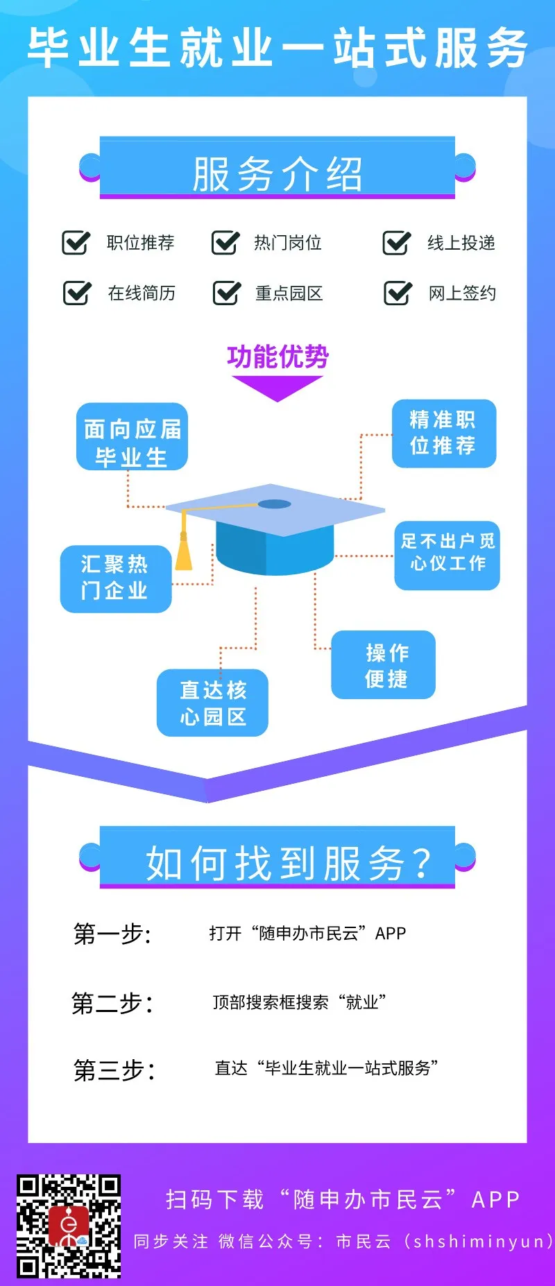 点击下载→随申办市民云APP,体验“毕业生就业一站式服务”