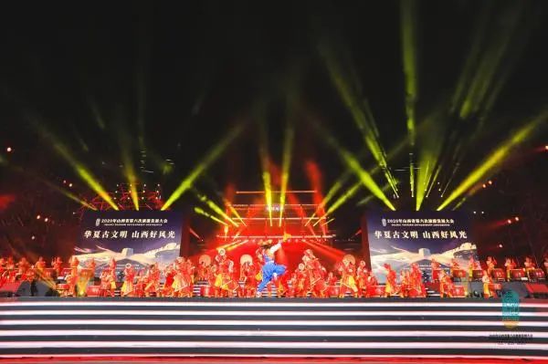9月9日晚7时,忻州古城的灯光同时亮起,夜空之中光影交错、璀璨漫天,舞台上喜迎宾客的威风锣鼓催人奋进……绚丽多彩、气势磅礴的开场秀拉开了2020年山西省第六次旅游发展大会特别活动“长城之夜”的序幕。