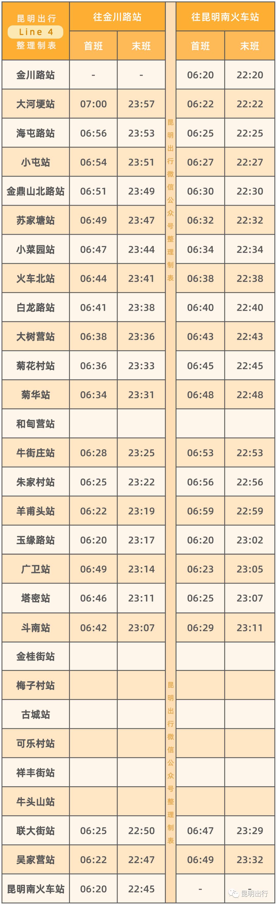 原标题:《昆明地铁4号线、6号线二期运营时间表出炉!头班车时间是…》