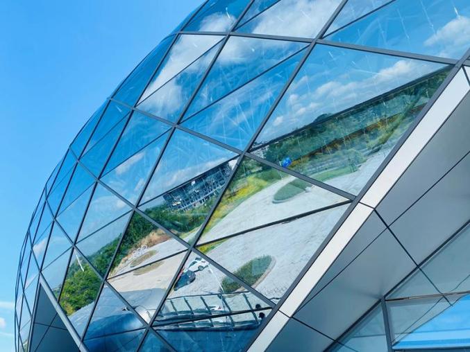 天蓝色的玻璃幕墙,