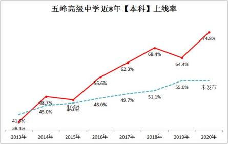 在县委政府、教育主管部门的坚强领导下,五峰高级中学紧密围绕五年奋斗目标勠力同心,克难奋进,稳步提升,不断超越。2016年首次脱贫摘帽,一本上线率和本科上线率分别超省上线率4.3和12个百分点;2018年实现大转折,一本上线率达21.5%,本科上线率达68.4%。