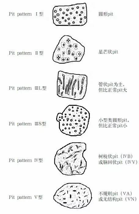 ⅢS型:比正常的pit小的圆形的腺管开口,ⅢL型比正常的大的腺管开口。