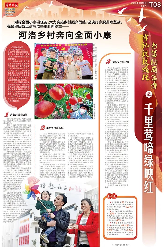 一年来,沿着总书记指引的方向,河洛大地吹响了决胜全面小康、决战脱贫攻坚的冲锋号,脱贫攻坚战节节胜利,乡村振兴战略步步推进,乡亲们生活在美丽乡村,耕耘在希望田野,奔跑在小康路上,获得感幸福感更加充盈。