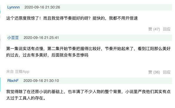 开篇即死的江阳在故事的开头就赚满了原著粉的眼泪,而后续看着意气风发、原本前程似锦的江阳一步步走向寻找真相和真理的坎坷道路,观众感叹的同时也不免悲伤。