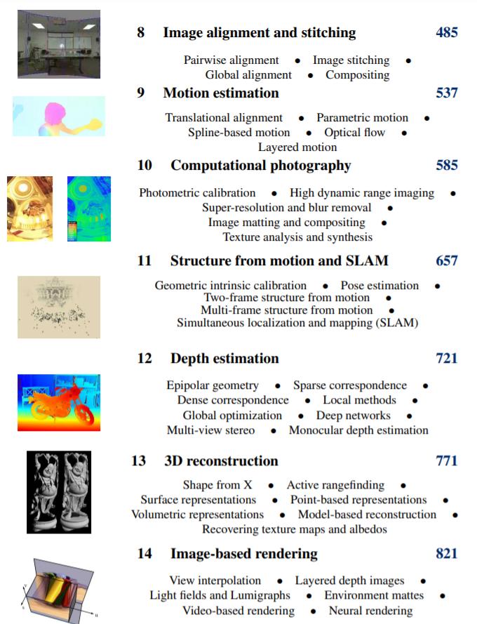 第二版的《计算机视觉:算法与应用》也是 14 个章节,分别为: