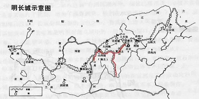 其中,“内长城”起自内蒙古与山西交界处的偏关以西,东行经雁门关、平型诸关入河北,然后向东北,经涞源、房山、昌平诸县,直达居庸关,然后又由北向东,至怀柔的四海关、与“外边”长城相接,以紫荆关为中心,大致成南北走向。