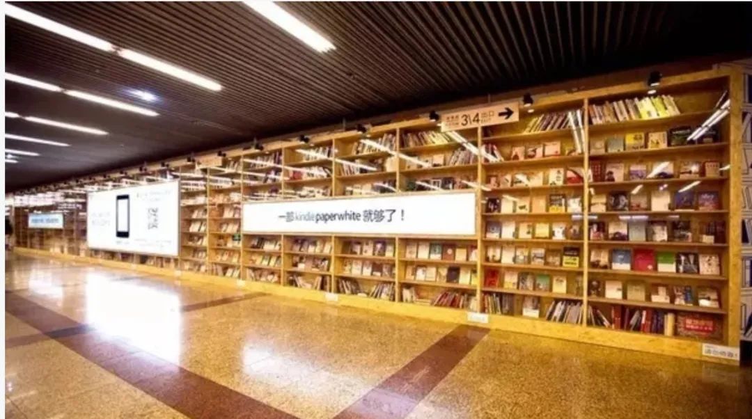 与之相反的是,其Kindle业务在中国的推广却始终积极进行着本土化的改造,并把营销目标精确定位在以大学生、年轻白领为主的阶层上。2014年,上海静安寺地铁站出现一座两吨重的大书架,里面放了两千本书,而书架中间放了一个200克重的Kindle。以强烈对比引起年轻受众的兴趣:想将这里所有书都带走的话,一部Kindle就够了。
