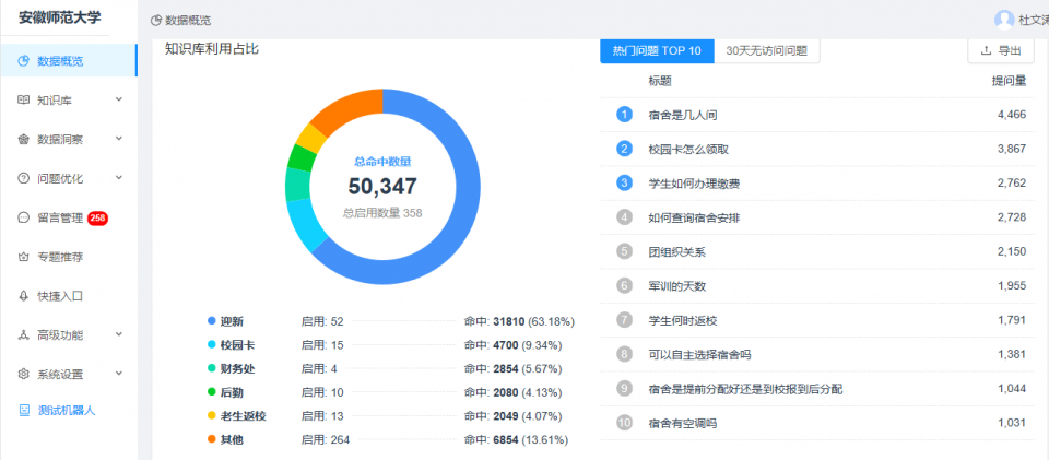 据介绍,数字化迎新首先表现在新生入校前,利用人工智能技术解答学生的问题。“新生对大学向往已久,有很多问题想知道,以往只能通过打电话或者在群里咨询教师或学长学姐,常常得不到及时或者准确的答复。”该校相关负责人表示,今年启用人工智能技术,建设了智能问题系统(校园百事通),将学校的相关政策和要求、以及学生关心的问题,提前准备好文案并通过各职能部门审核,做到对问题的解答准确和权威。学生通过学校移动门户访问智能问答系统,通过语音或文字输入自己想问的问题,系统快速给出相应的答案,准确率超过98%。学生可以随时随地问,9月1日以来系统访问达60000+人次,节约人工时长约6000+小时,方便了学生,也节约了师生的时间。