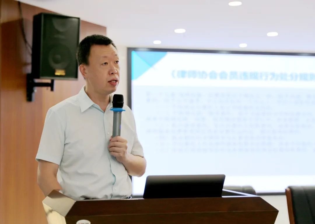 吴江副主任从执业风险防范的重要性、适用法律及相关规定、违规行为种类、纪律处分程序、被调查会员权利等方面详细解读了律师职业道德和执业纪律的相关规定,从防范执业风险的目的出发,结合新修订的行业规范和最新的行业惩戒案例,指引广大律师遵守职业道德和执业纪律,进一步规范执业行为,提升律师事务所抵御执业风险的能力。
