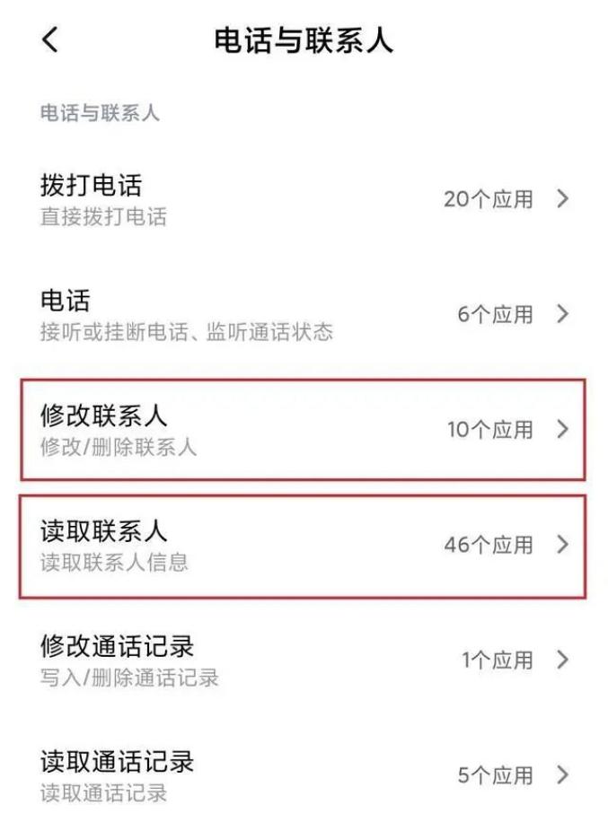 2、联系人权限中的“修改联系人”和“读取联系人”谨慎授权。App需要联系人权限的原因是需要挖掘好友信息,查找同平台中存在的好友,贴合用户习惯并让用户使用更便利。但现在有一些乱象是:没有社交、通讯功能的软件要求授权获取联系人权限,那么很有可能别有用心。用户的信息在当下较为值钱,黑市上按条出售用户信息的事情屡见不鲜,通过垃圾软件套取用户的信息转手售卖,对于用户来说是一件非常未见的事情。
