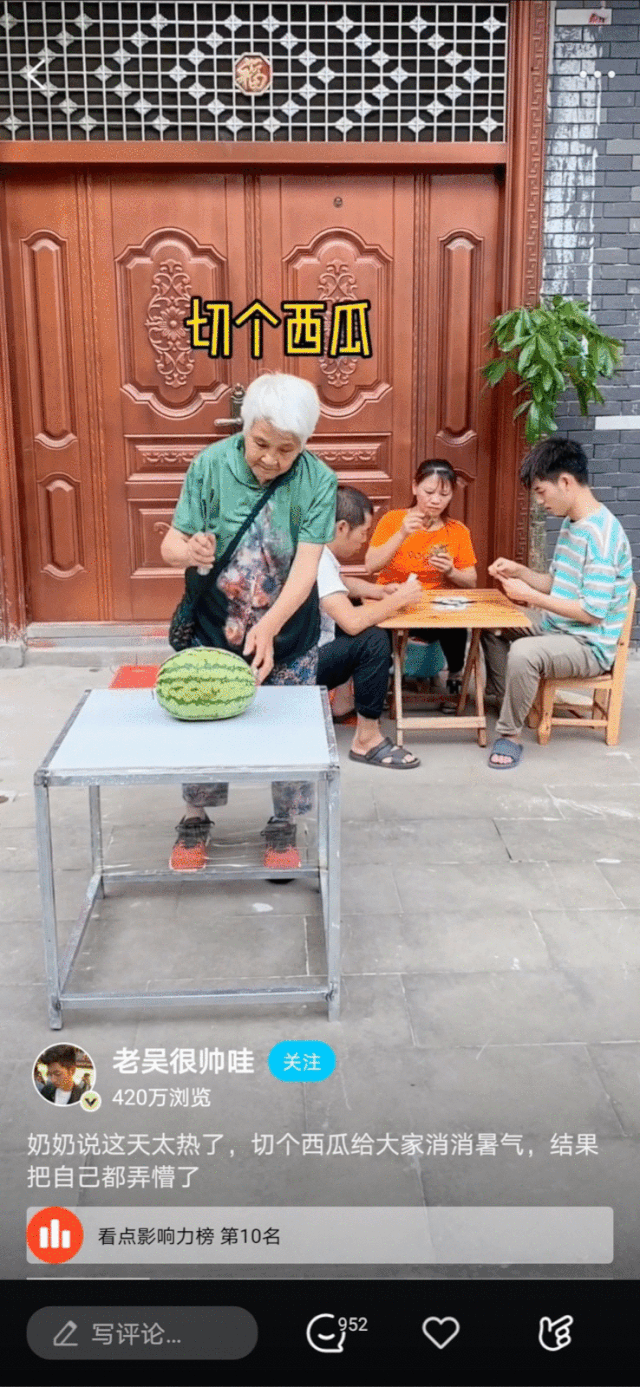 “老吴很帅哇”是他在腾讯看点上的账号名。视频里他是一个花式作死的儿子,整天捉弄父母,被父母追着打。疫情期间,老吴抓住了流量高峰期,在搞笑领域突出重围。