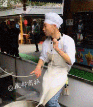 “火”了之后,黄龙溪也出现了许多模仿者,开始盛产“拉面哥”。而他们的灵感来源,都是从田波开始的。田波说,他发明的这个“舞步”,在全国都是首创,“现在全国的花式甩面都是跟着我学的。”
