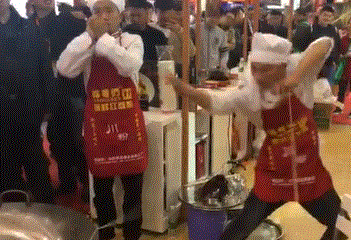 他说,当时在前东家,隔壁面店的生意很好,而这边生意都没有,他便从拉面上下功夫,自创了一套“花式甩面”逗顾客们开心,后来就莫名其妙地火了起来。