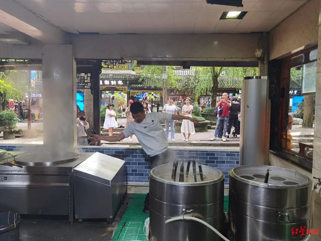 采访的过程中,有顾客进店点了他们的招牌“一根面”。田波走进开放式厨房,许多路边的游客围了过来,掏出手机准备拍照,但田波只是盯着锅里沸腾的水,端起面条,用最普通的姿势,在最短的时间内将面放进了锅里。再没有那些妖娆的动作,也没有那些挑逗的表情。